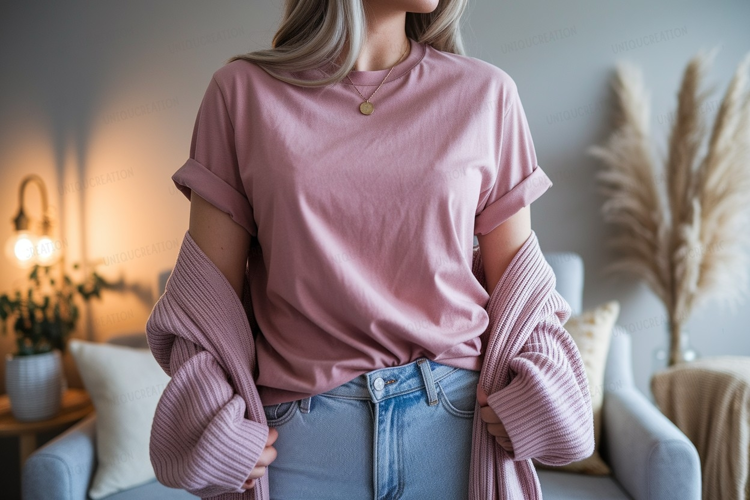 Similar Design Products to Pink t shirt and cardigan mockup image