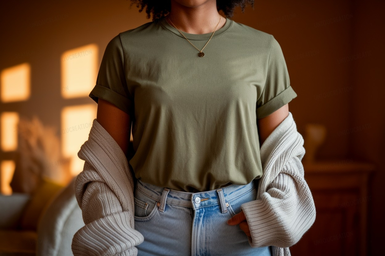 Light Fashion Shirt Clothing Casual Mockup Apparel Jeans Olive Cardigan