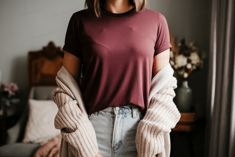 Light Fashion Shirt Clothing Mockup Apparel Jeans Beige Maroon Cardigan