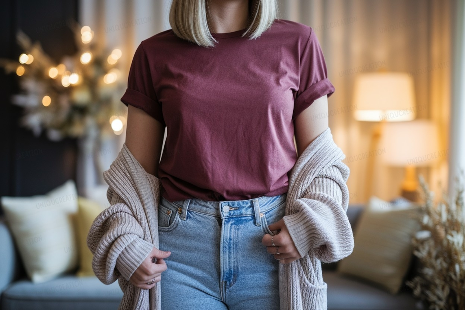 Similar Design Products to Maroon t shirt light denim jeans cardigan image