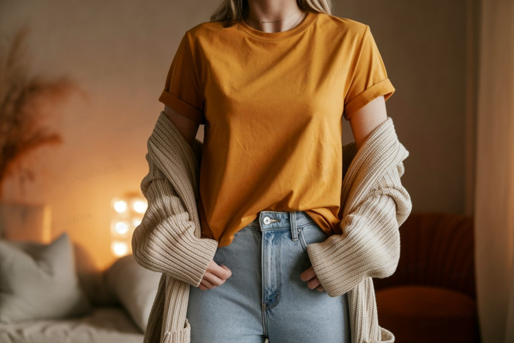Similar Design Products to Mustard shirt blue jeans cardigan image