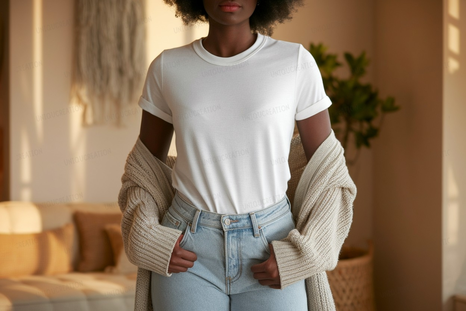 Fashion T-shirt Clothing Casual Mockup Apparel Woman Jeans White Cardigan