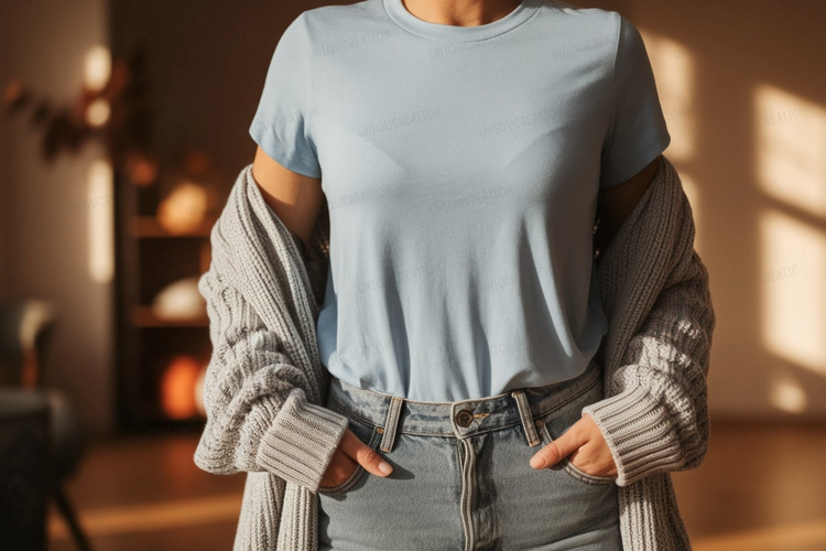 Similar Design Products to Light blue t shirt grey cardigan denim jeans mockup