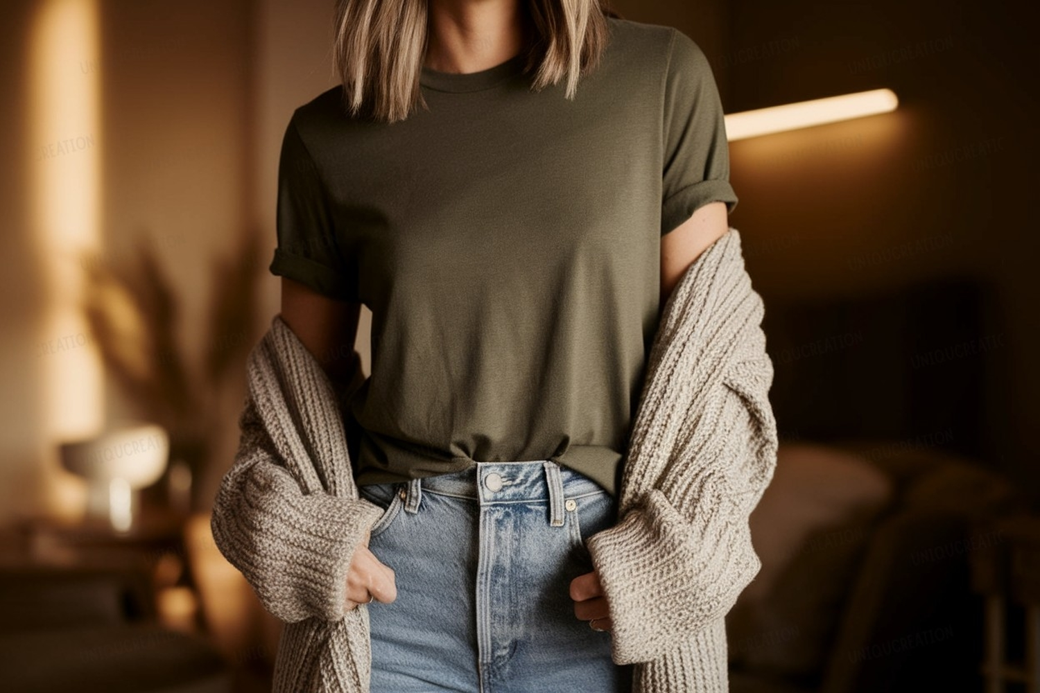 woman, man, female, male, person, fashion, clothing, apparel, casual, style, outfit, modern, chic, elegant, trendy, aesthetic, cozy, comfortable, soft, textured, knitwear, sweater, cardigan, knit, layered, cotton, fabric, stylish, everyday, relaxed, lifestyle, indoor, home, natural, light, shadows, studio, portrait, mockup, display, product, presentation, garment, simple, clean, neutral, background, upper body, torso, model, photo, image, picture, aesthetic, interior, decor, couch, pillows, vase, reeds, room