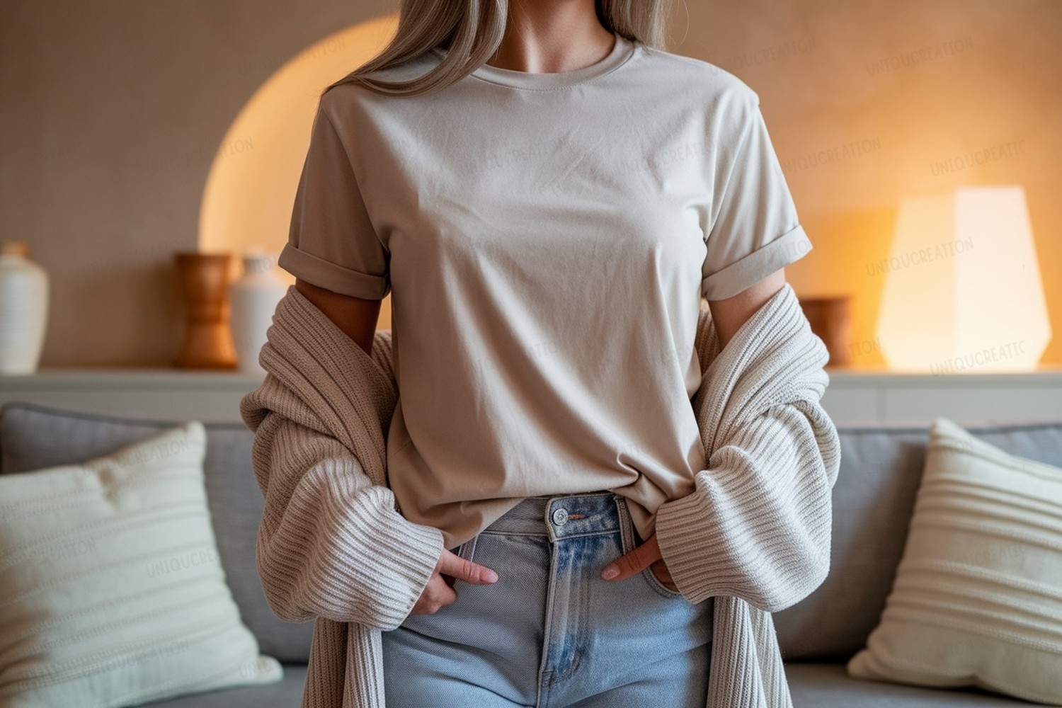 woman, man, female, male, person, fashion, clothing, apparel, casual, style, outfit, modern, chic, elegant, trendy, aesthetic, cozy, comfortable, soft, textured, knitwear, sweater, cardigan, knit, layered, cotton, fabric, stylish, everyday, relaxed, lifestyle, indoor, home, natural, light, shadows, studio, portrait, mockup, display, product, presentation, garment, simple, clean, neutral, background, upper body, torso, model, photo, image, picture, aesthetic, interior, decor, couch, pillows, vase, reeds, room