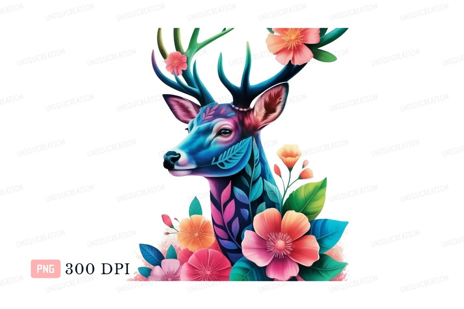 Colorful deer adorned with flowers nature fantasy