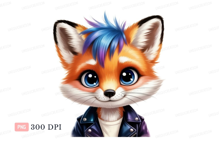 Cartoon fox punk rocker blue example image 1