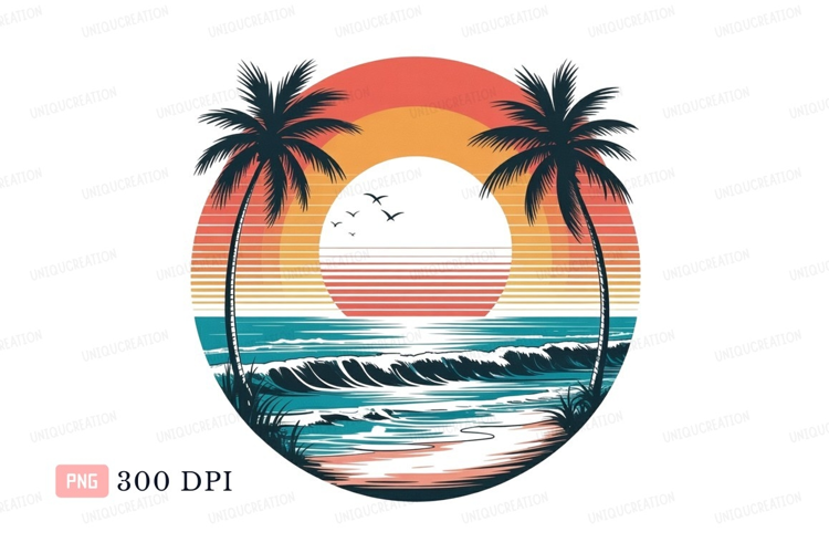 Similar Design Products to Sunset palms ocean waves birds image