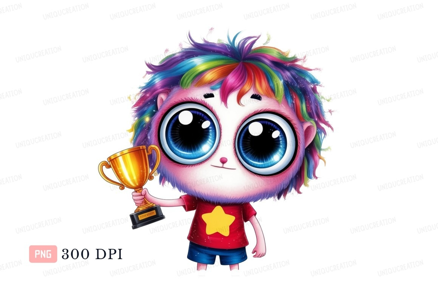 Similar Design Products to Fluffy creature rainbow hair holding trophy image
