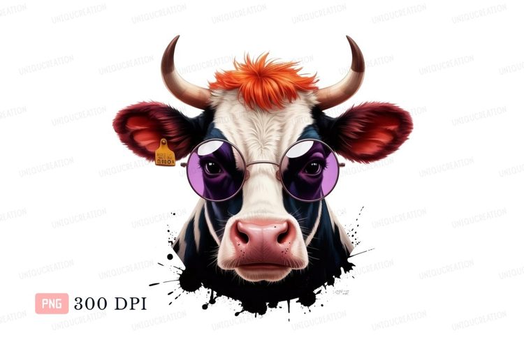 Cow wearing round glasses and orange hair black example image 1