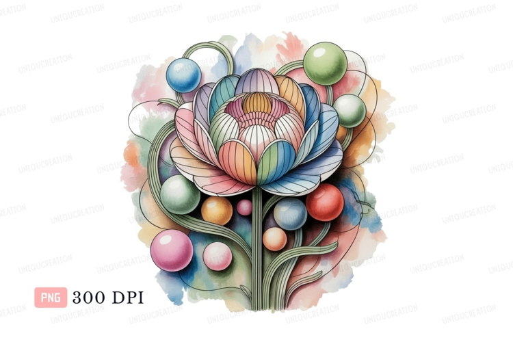 Watercolor Colorful Flower Abstract Pastel Lotus Butterflies Pearls Avian Spheres