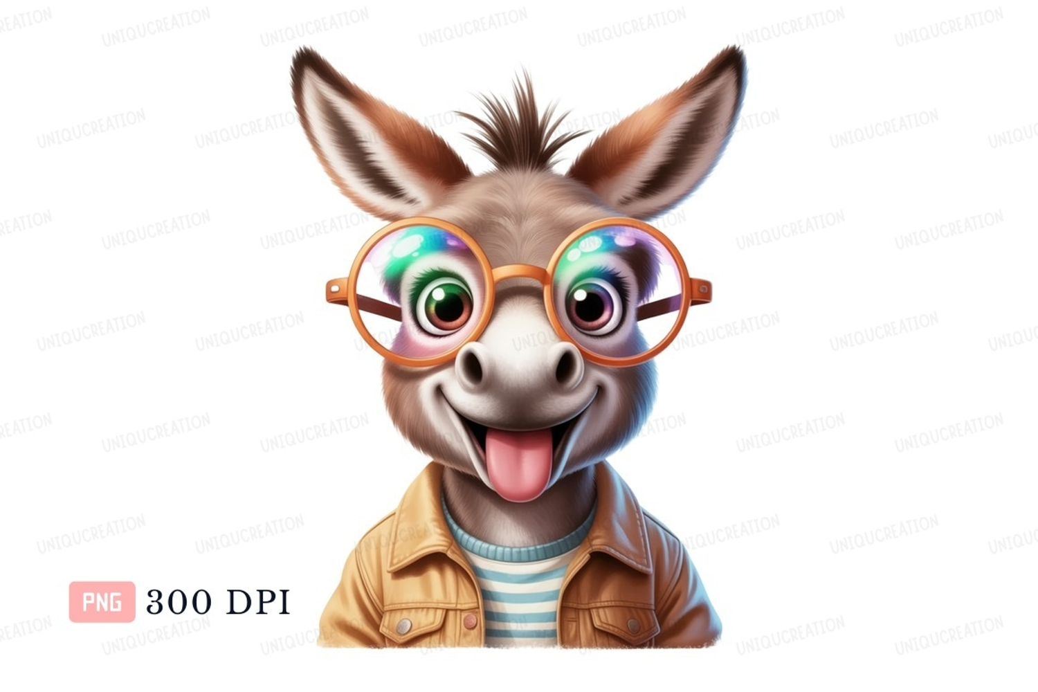 Funny donkey wearing colorful glasses animal cartoon example image 1