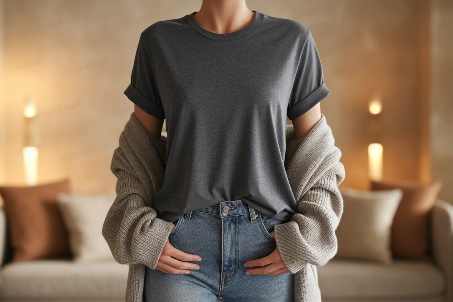 woman, man, female, male, person, fashion, clothing, apparel, casual, style, outfit, modern, chic, elegant, trendy, aesthetic, cozy, comfortable, soft, textured, knitwear, sweater, cardigan, knit, layered, cotton, fabric, stylish, everyday, relaxed, lifestyle, indoor, home, natural, light, shadows, studio, portrait, mockup, display, product, presentation, garment, simple, clean, neutral, background, upper body, torso, model, photo, image, picture, aesthetic, interior, decor, couch, pillows, vase, reeds, room