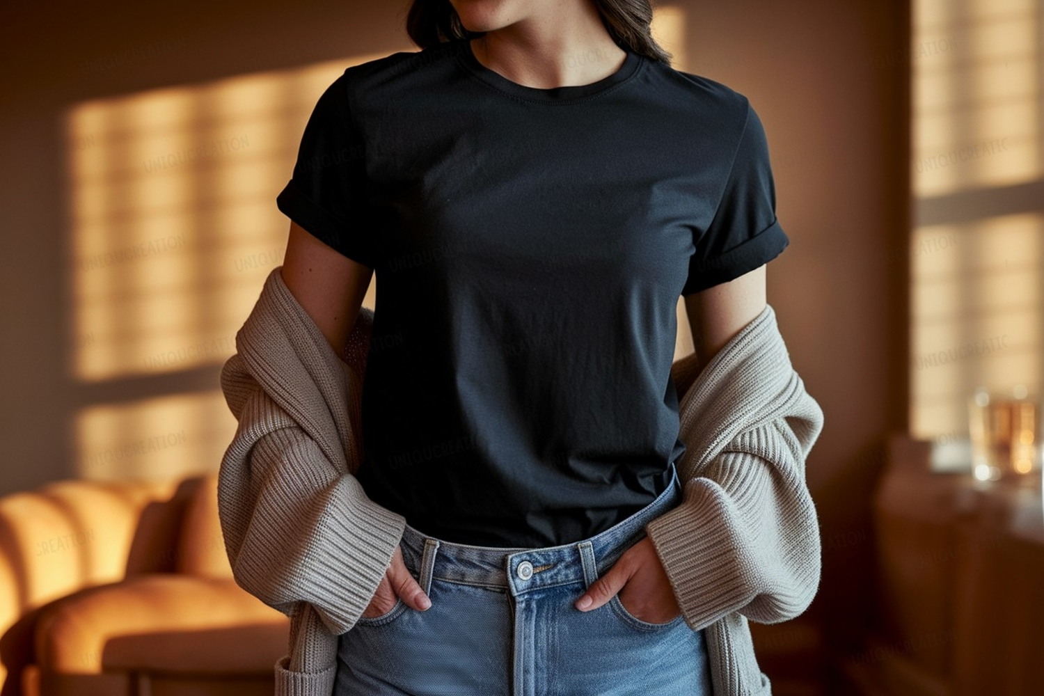 Similar Design Products to Woman wearing black t shirt and blue jeans image