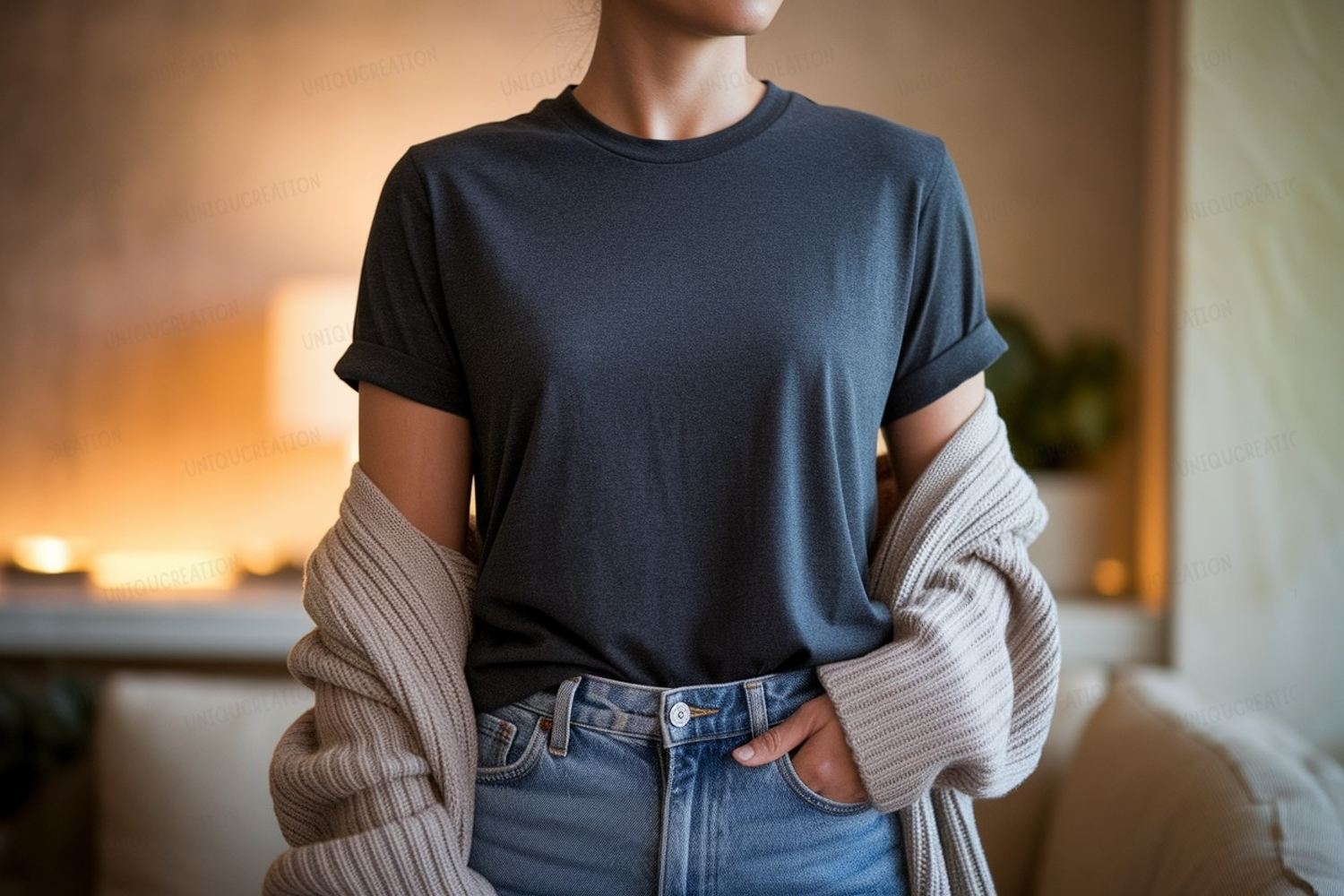Dark grey t shirt mockup with cardigan