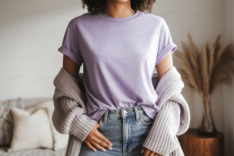Similar Design Products to Lavender tee denim cardigan mockup image
