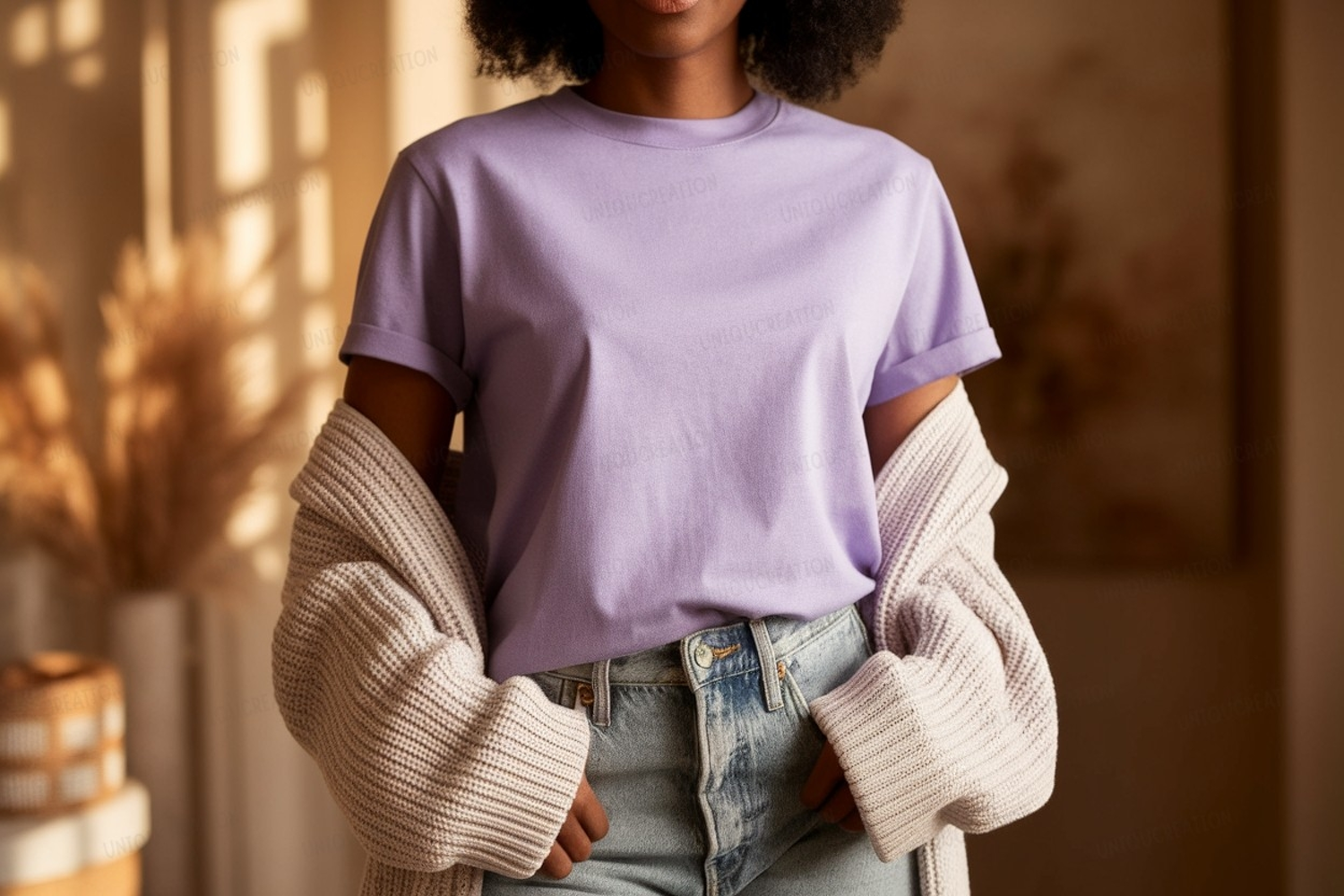 Light T-shirt Clothing Casual Mockup Apparel Lavender Purple Jeans Denim