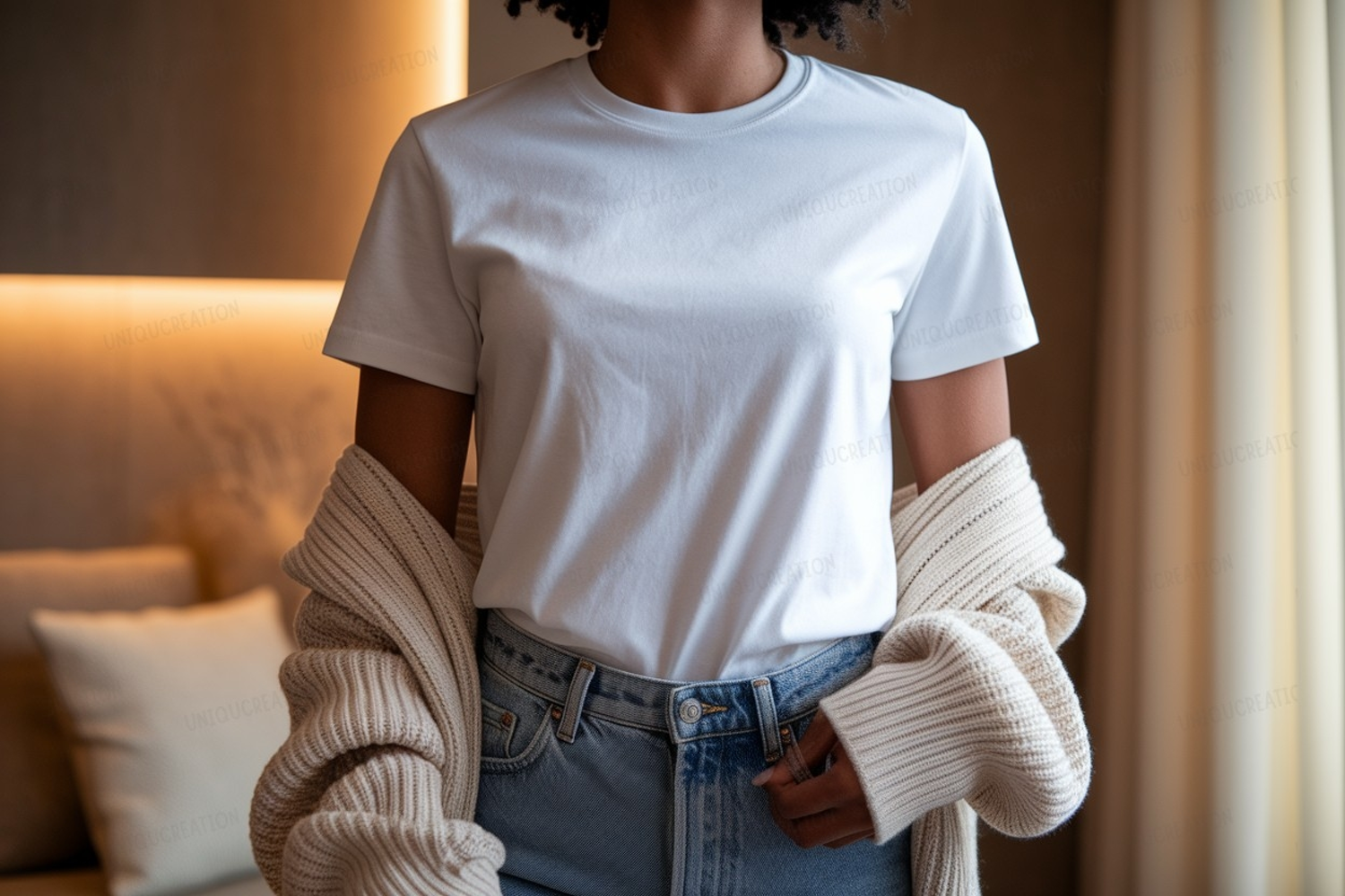 Similar Design Products to Woman wearing white t shirt and cardigan