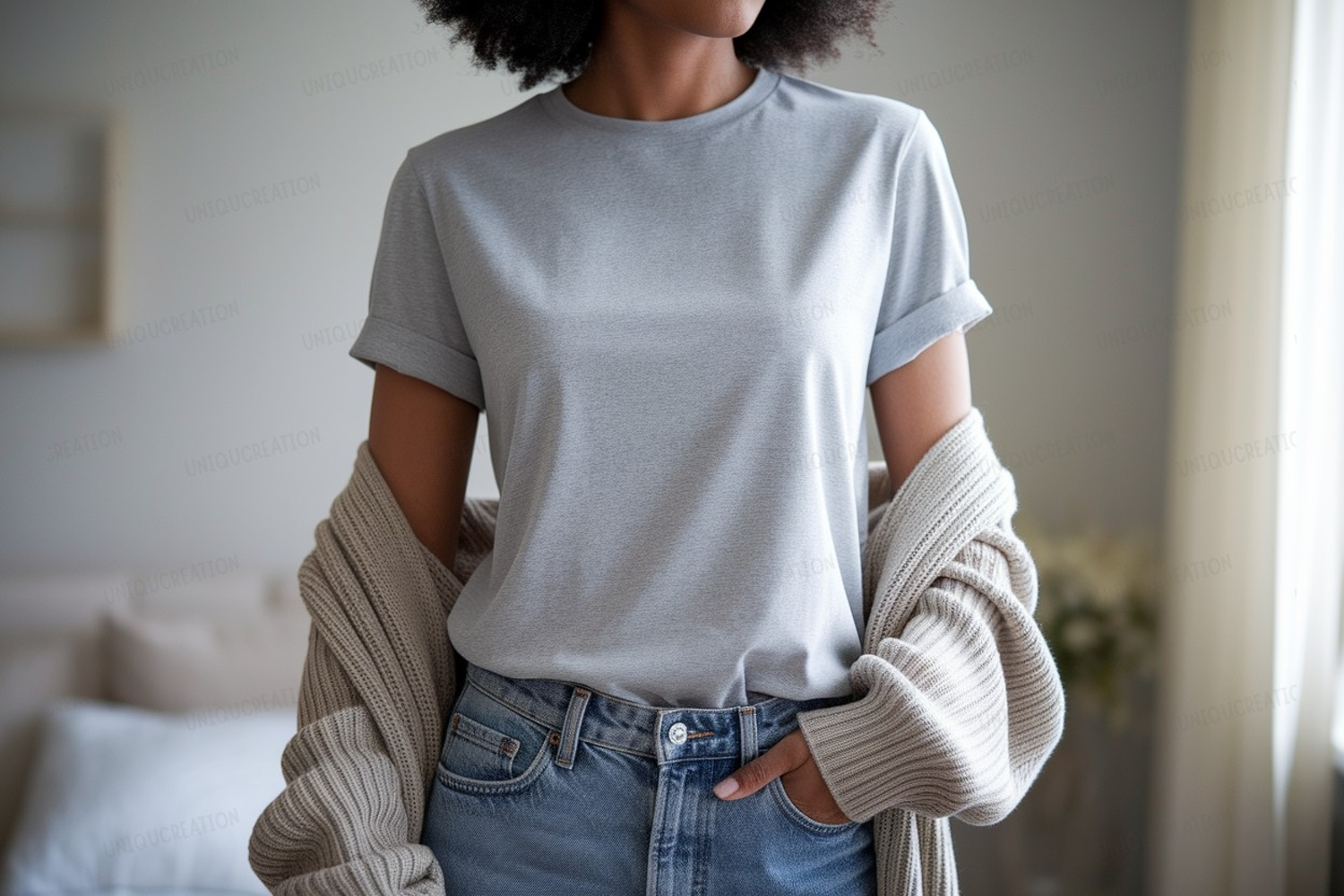 Similar Design Products to Woman wearing grey t shirt and jeans