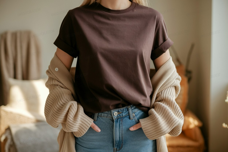 Fashion Style Shirt Clothing Casual Mockup Brown Blue Jeans Cardigan