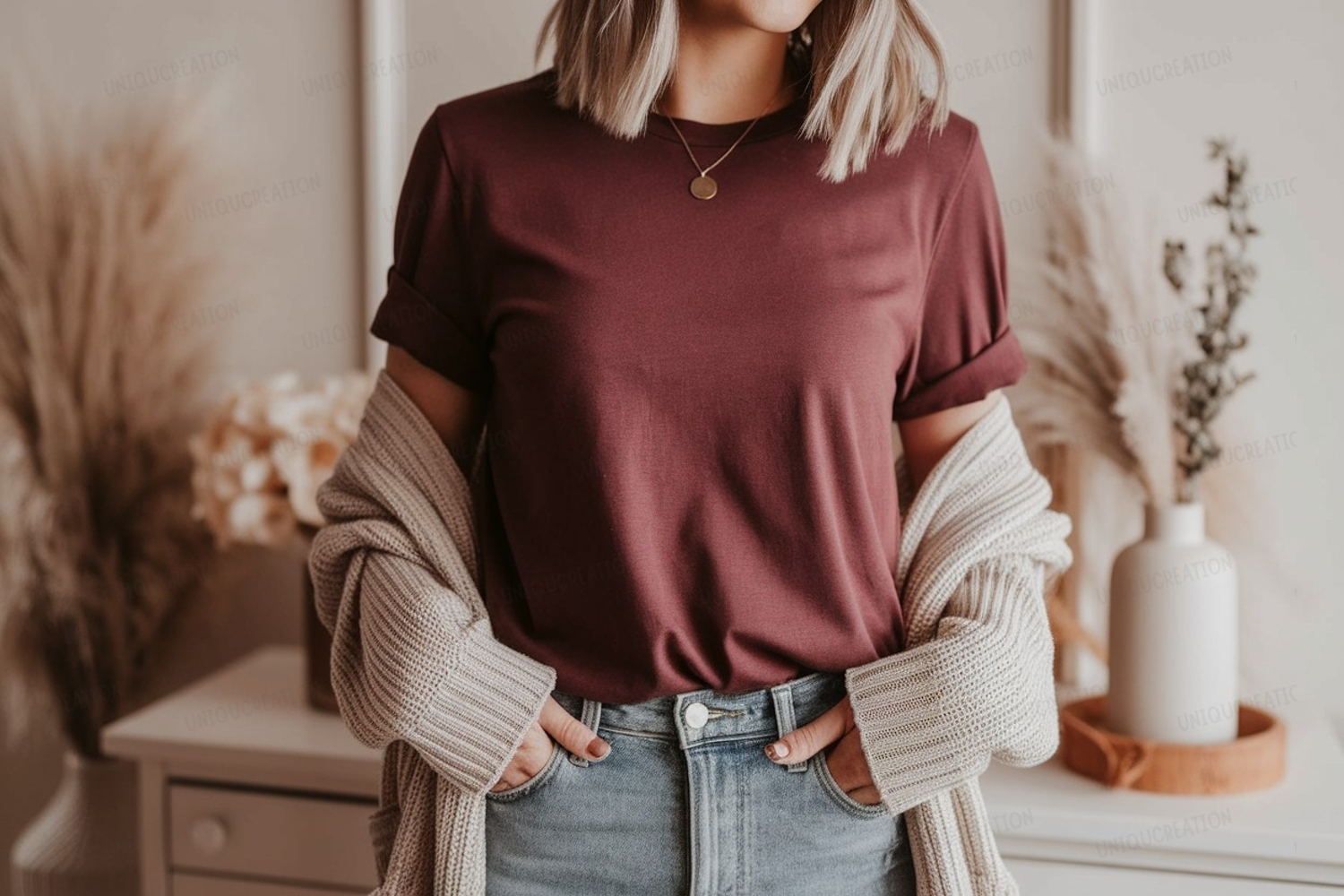 Similar Design Products to Maroon shirt light jeans cozy cardigan image
