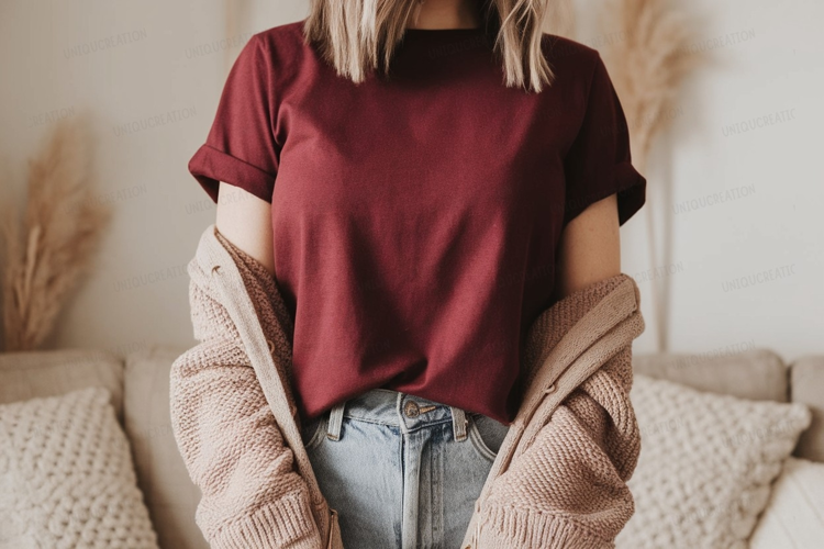 Maroon shirt light cardigan denim jeans image example image 1
