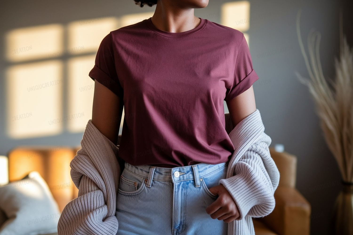 Light Fashion Shirt Clothing Casual Mockup Jeans Person Maroon Cardigan