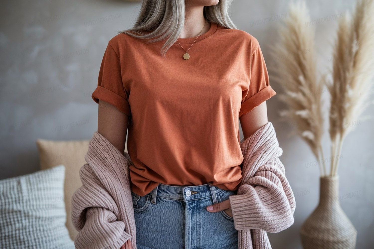 Fashion Shirt Clothing Casual Mockup Orange Jeans Denim T Cardigan