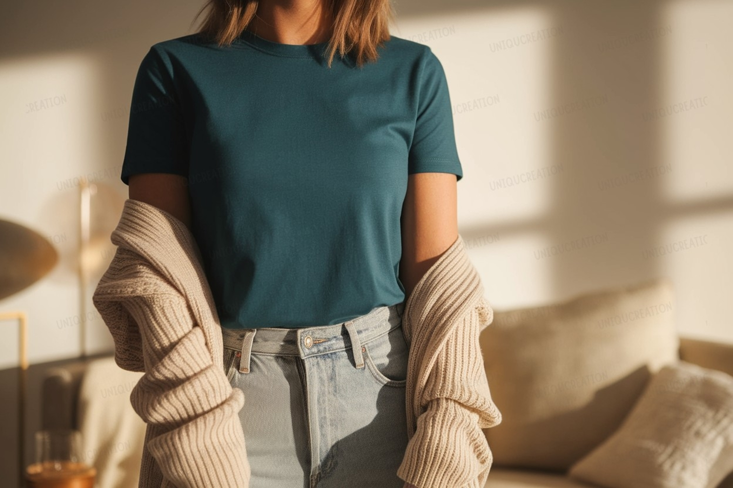 Similar Design Products to Teal shirt light jeans cardigan image