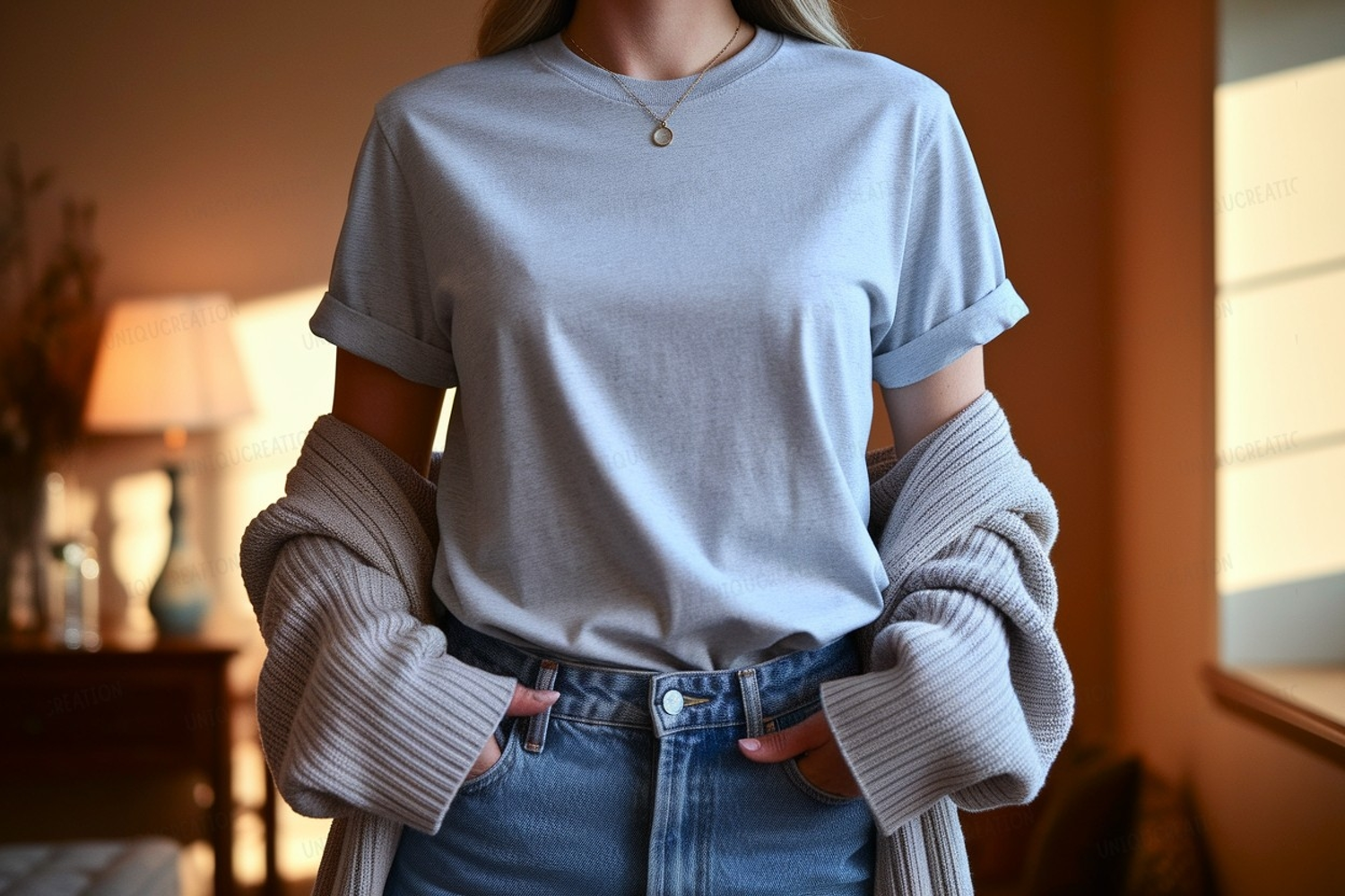 Fashion Shirt Clothing Casual Mockup Woman Jeans T Outfit Sweater