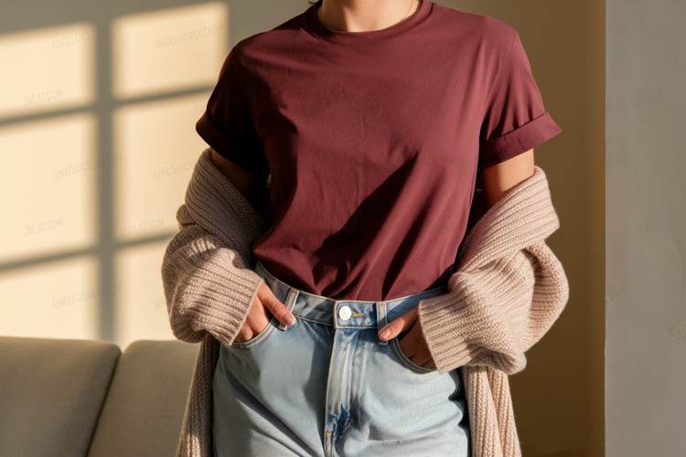 Similar Design Products to Maroon shirt light jeans cardigan image