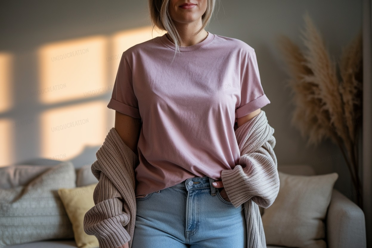 Fashion Shirt Pink Clothing Casual Mockup Woman Jeans T Comfortable