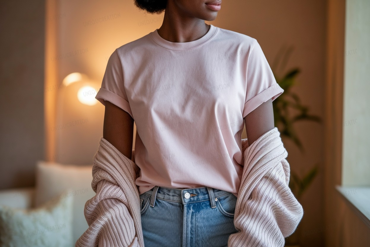 Fashion Soft Shirt Pink Clothing Casual Mockup Jeans Comfortable Cardigan