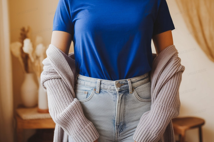 Similar Design Products to Blue shirt light jeans grey cardigan image