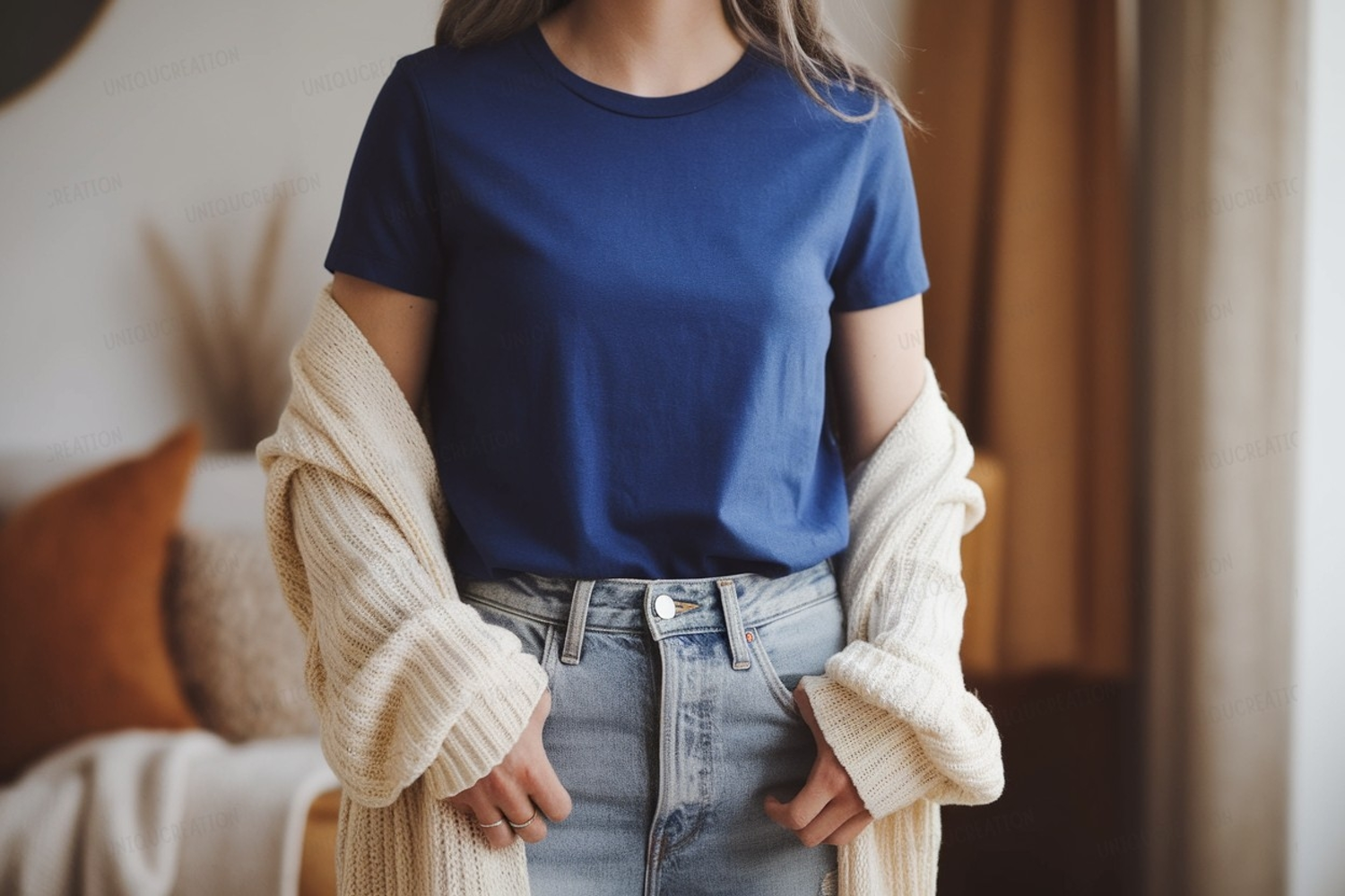 Fashion Shirt Clothing Casual Mockup Blue Jeans Female Cream Cardigan
