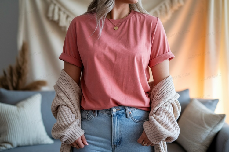 Fashion Shirt Pink Clothing Casual Mockup Jeans Beige Comfortable Cardigan