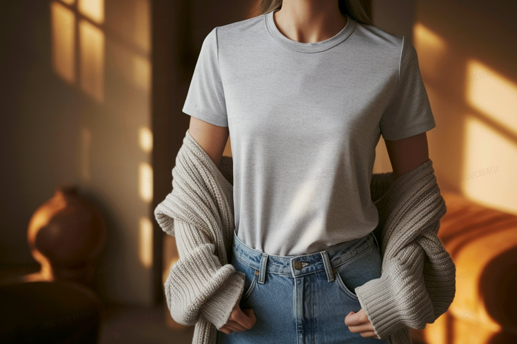 Similar Design Products to Grey t shirt and cardigan mockup denim