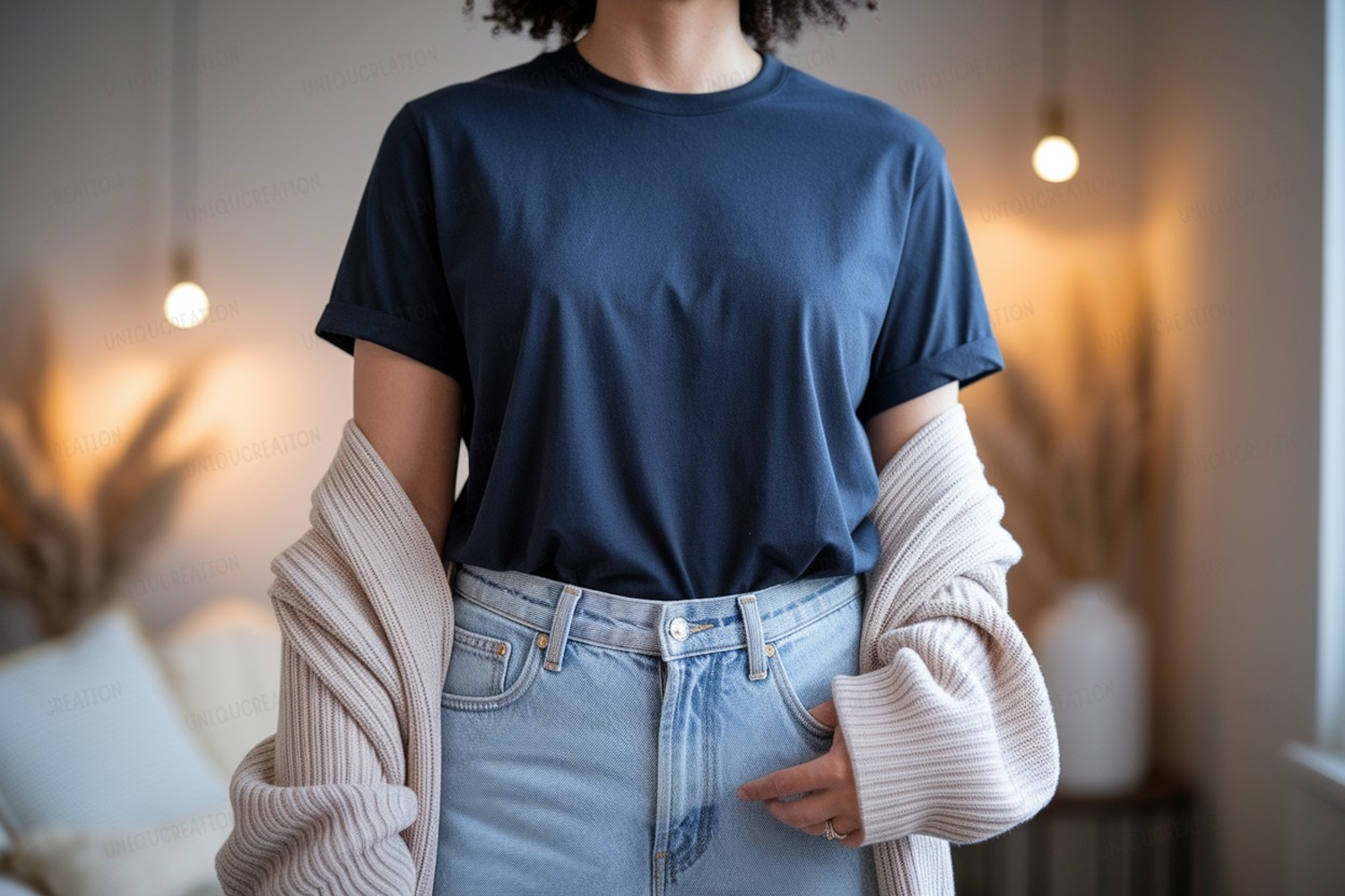 Fashion T-shirt Clothing Casual Mockup Apparel Model Jeans Female Comfortable