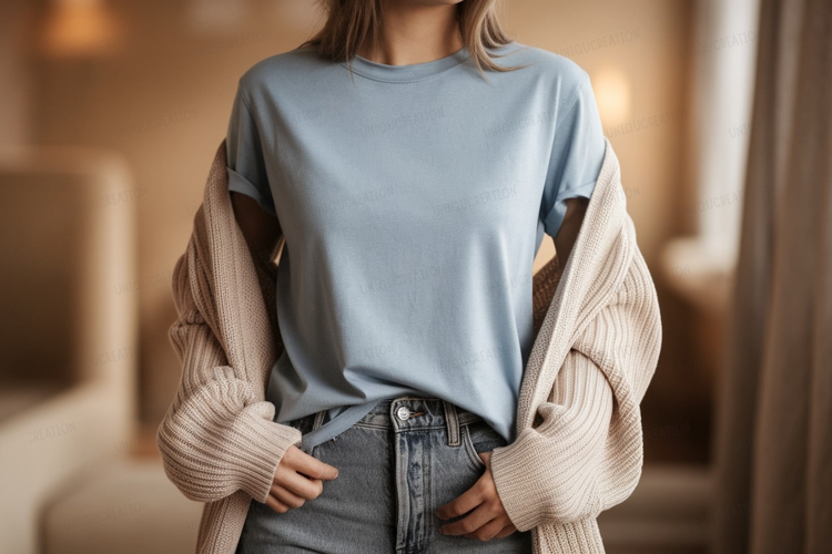 Similar Design Products to Light blue t shirt and beige cardigan image