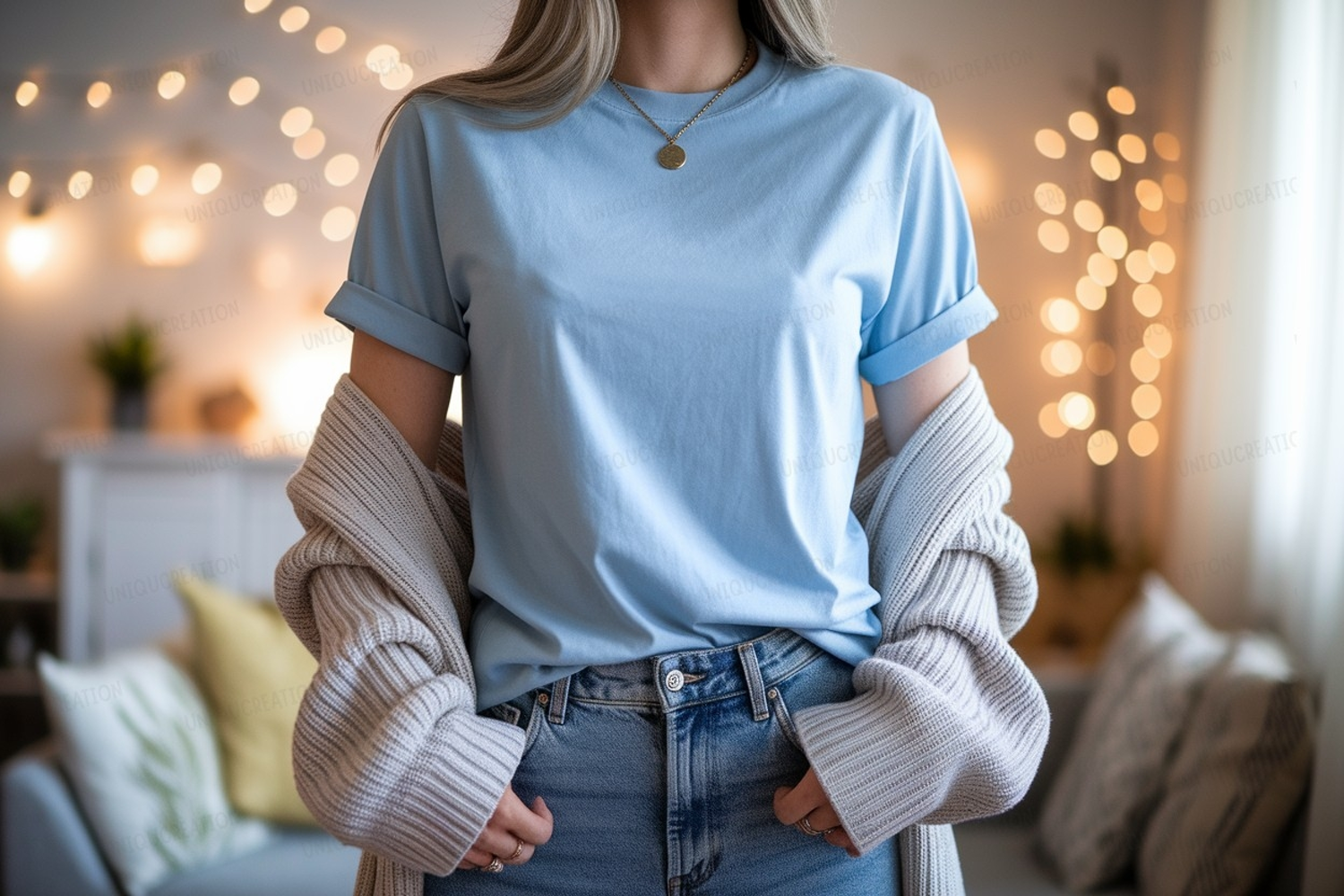 Similar Design Products to Light blue t shirt mockup with cardigan image
