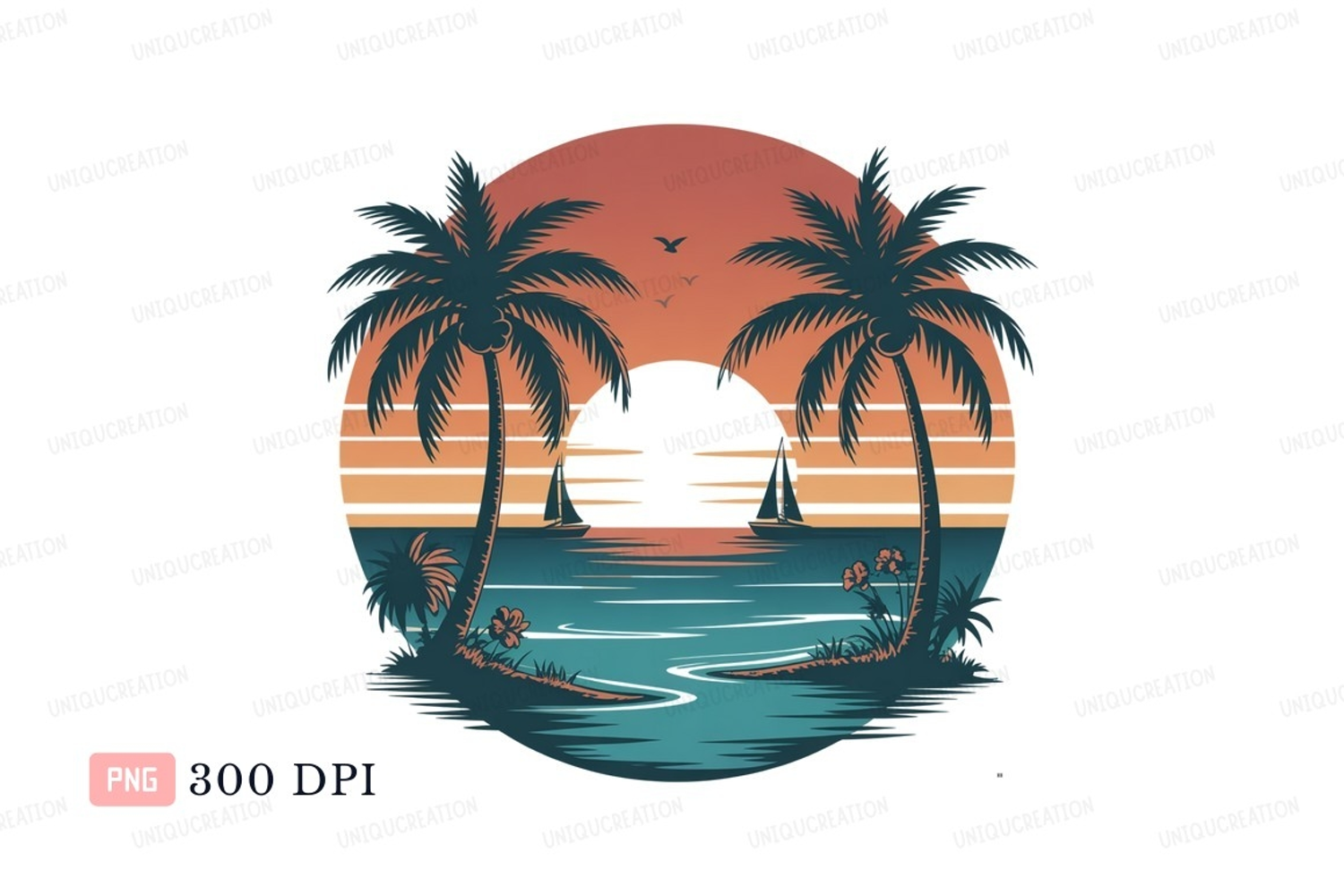 Similar Design Products to Tropical sunset ocean sailboats palm trees