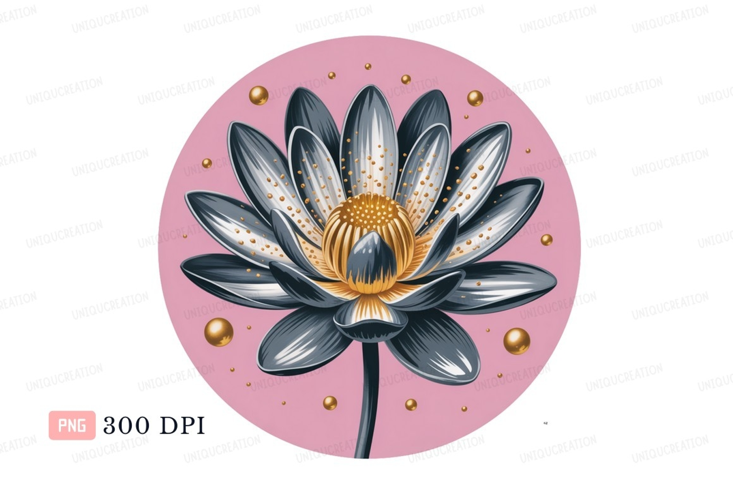 Gray lotus flower gold accents pink background image example image 1