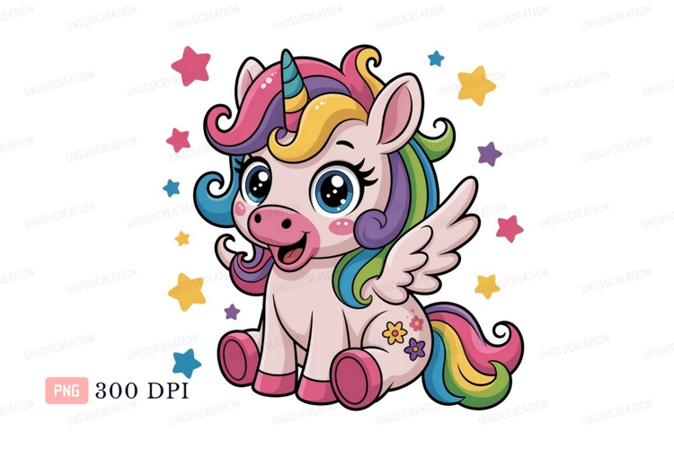 Cute unicorn with rainbow mane and wings stars example image 1