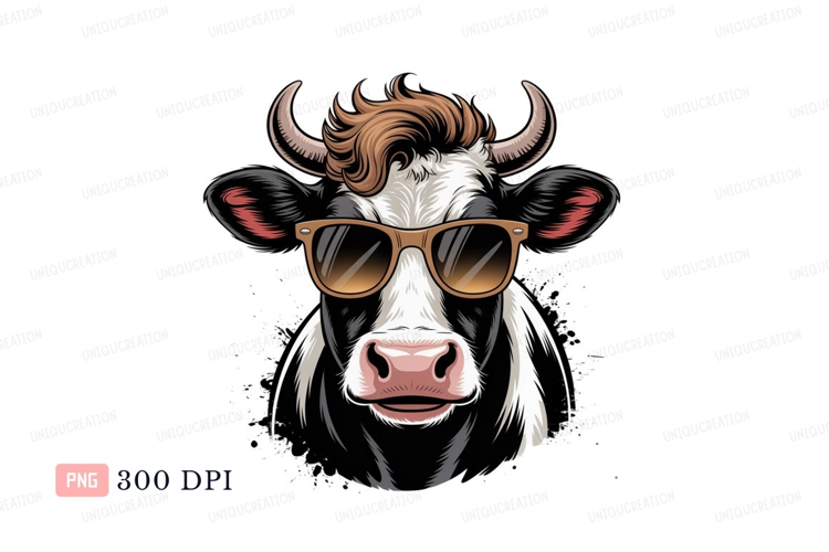 Cool cow wearing sunglasses black white example image 1