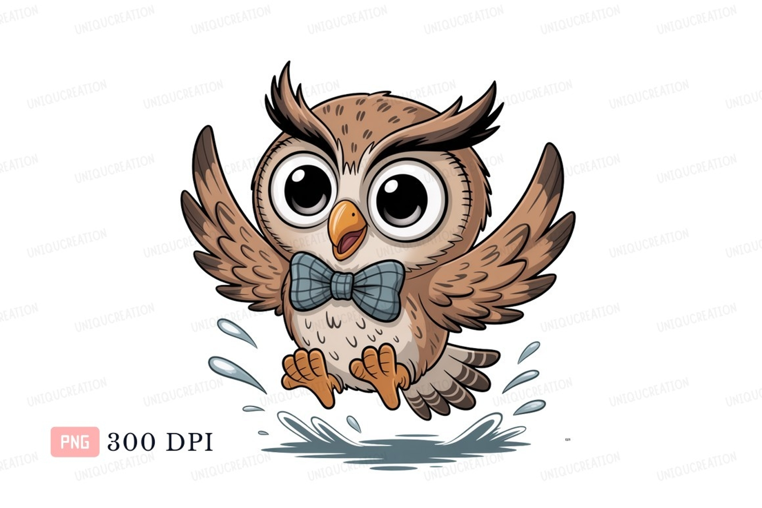 Brown owl with blue bow tie splashing image