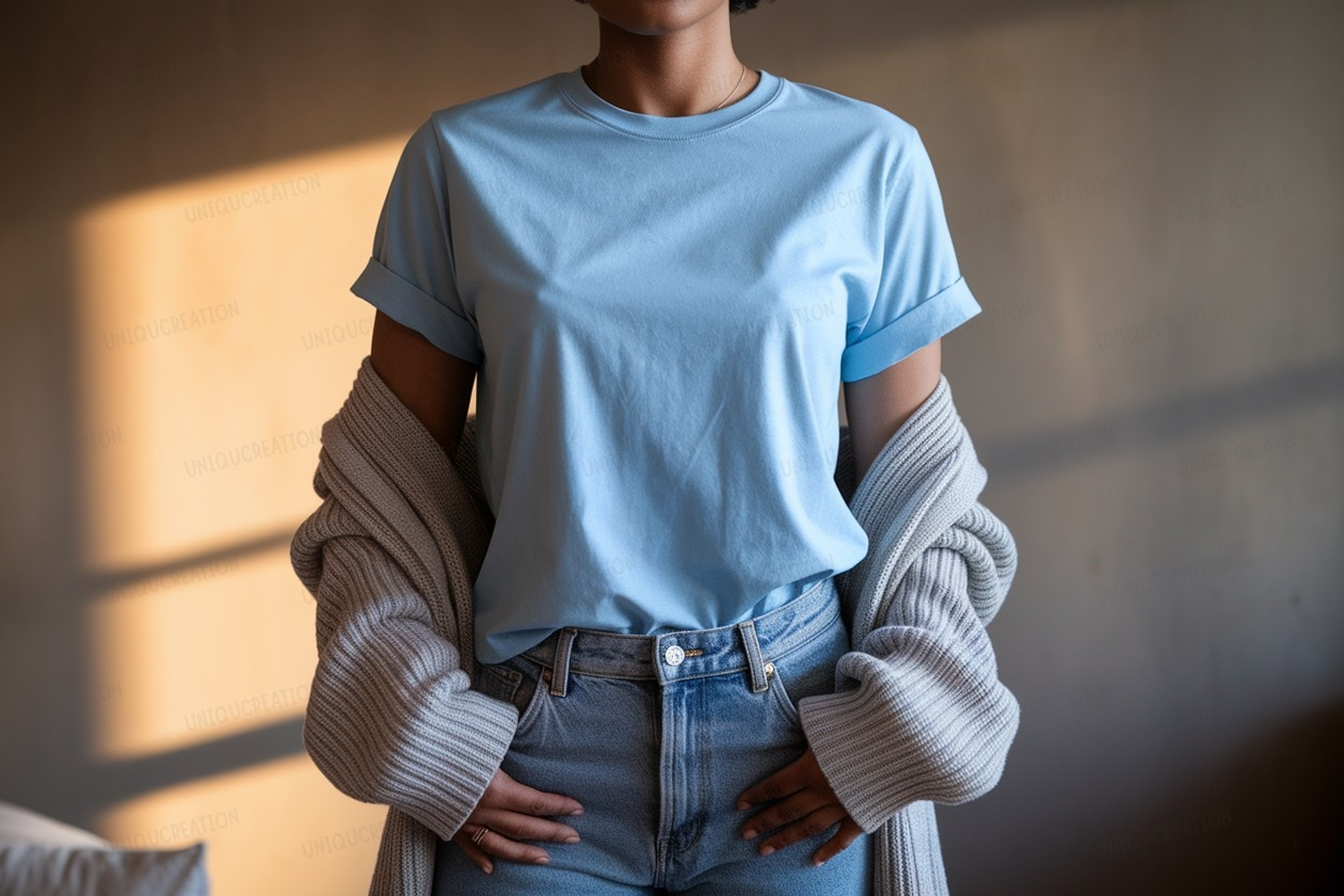 Similar Design Products to Blue t shirt and cardigan mockup denim