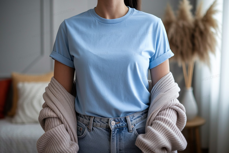 Similar Design Products to Blue t shirt and cream cardigan image