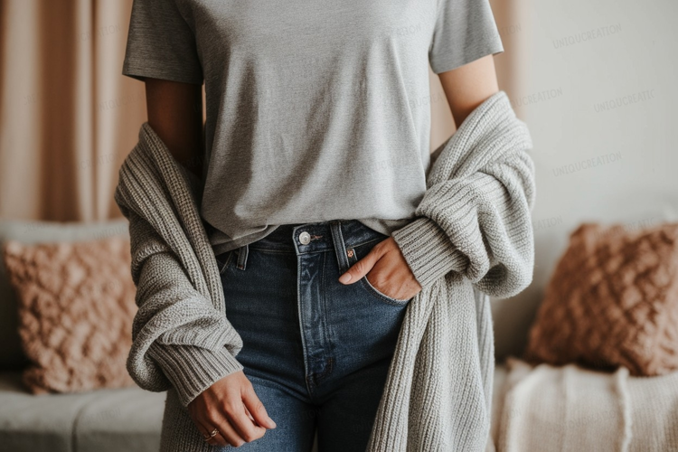 Similar Design Products to Grey shirt blue jeans cardigan image