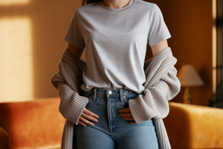 Fashion Shirt Clothing Casual Mockup Apparel Blue Jeans Gray Cardigan