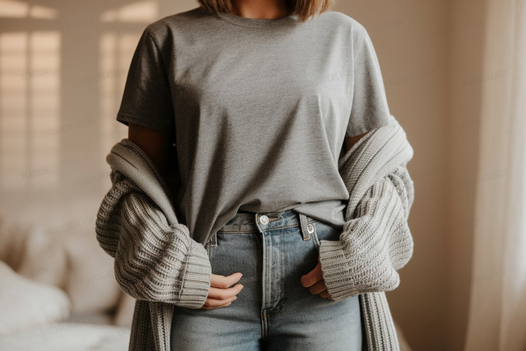 Fashion Shirt Clothing Casual Mockup Blue Jeans Grey T Cardigan